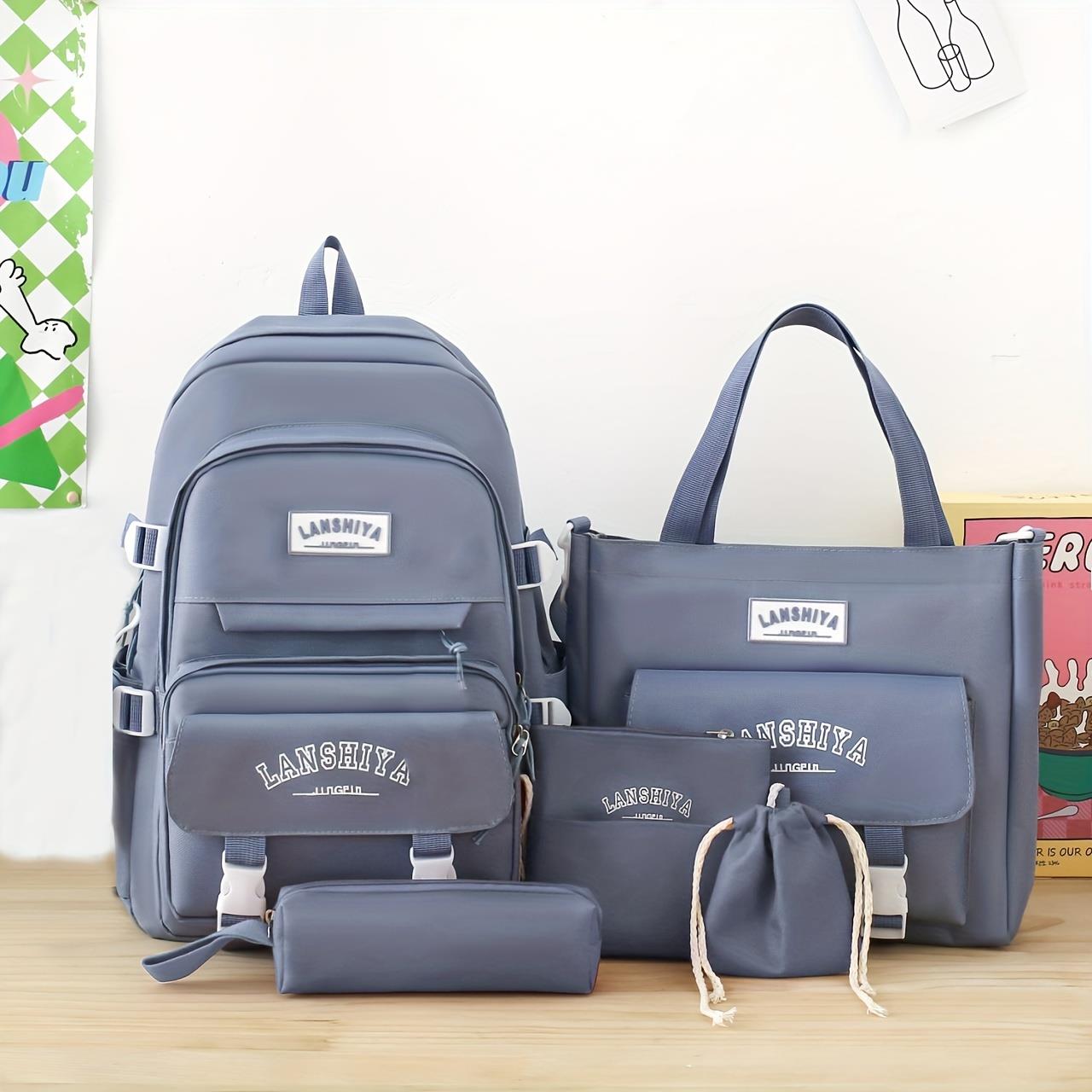5 Parça Set Sevimli Okul Çantası, Kawaii Kolyeli Moda Sırt Çantası, Tüm Maç Çantaları